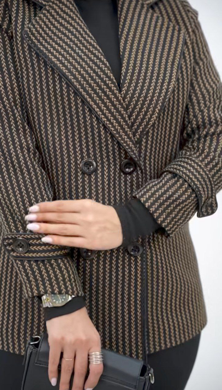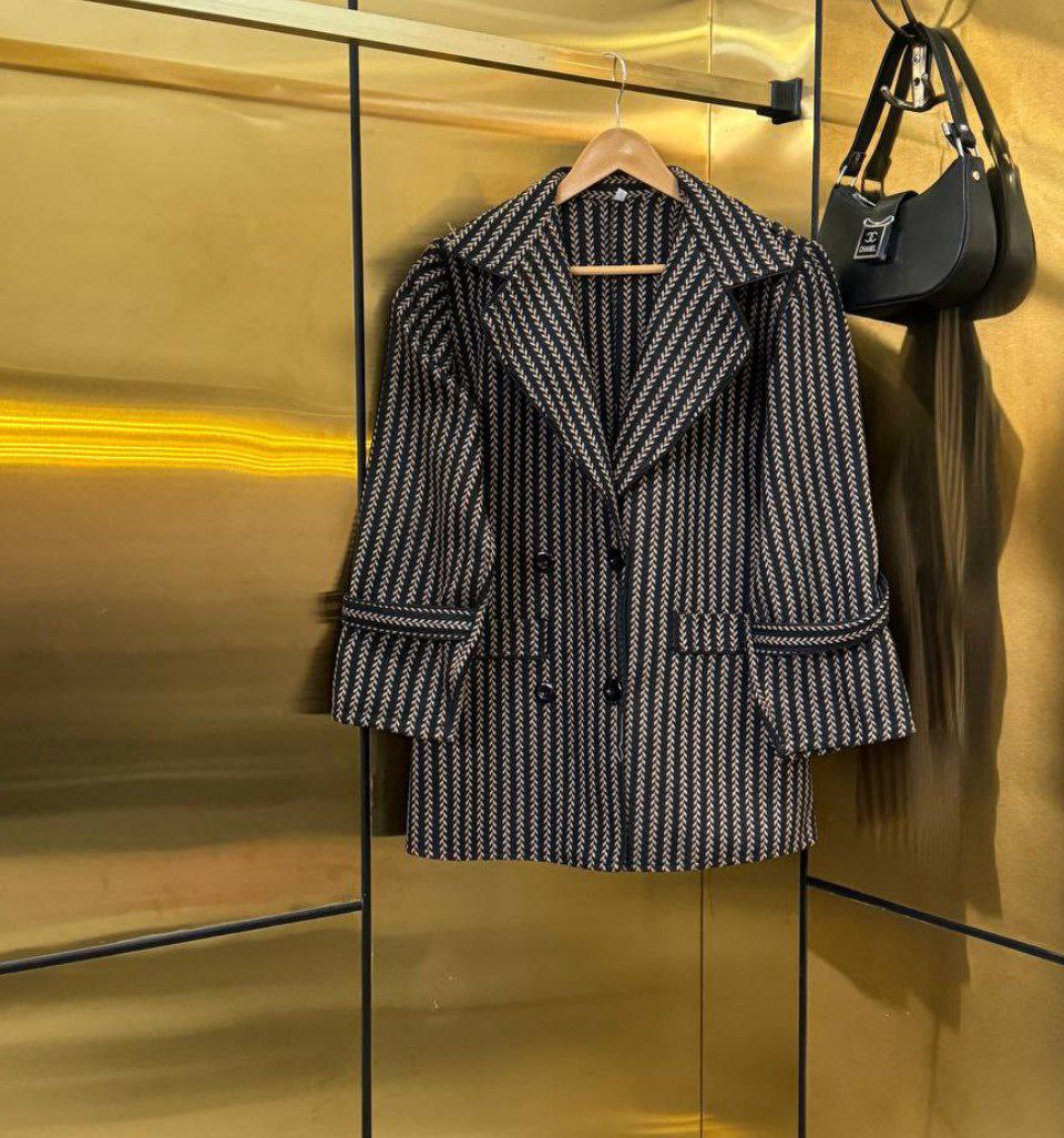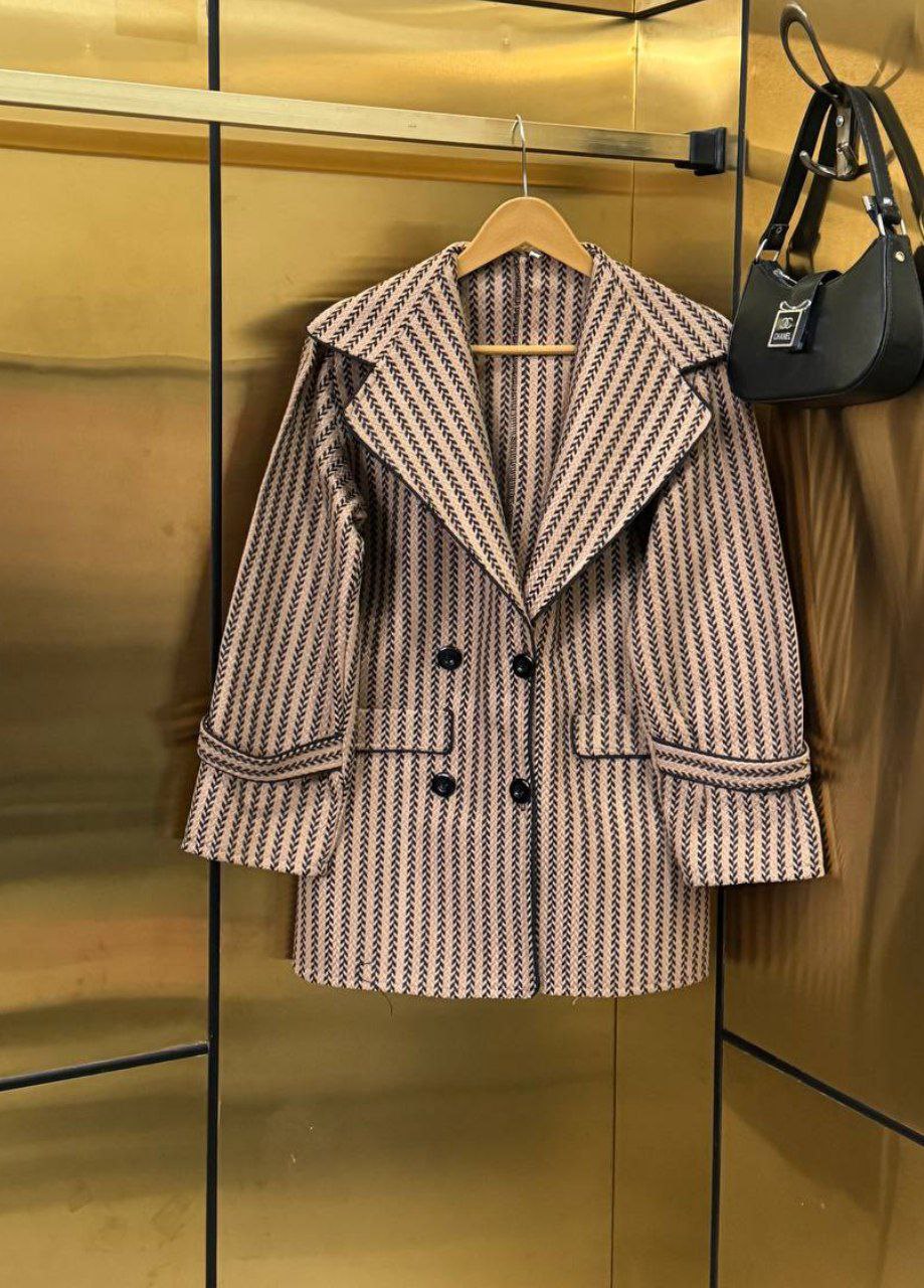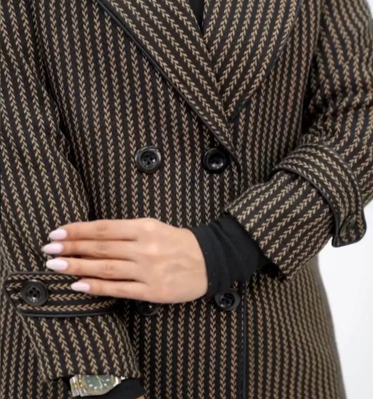 سایز یک برای 38 تا42 سایز دو برای 44 تا48 ✨قد 75 ✨دور سینه سایز یک 104 ✨دور سینه سایز دو 110 ✨قد آستین 58 ✨دکمه کاربردی جلو کت لایه کوبی شده