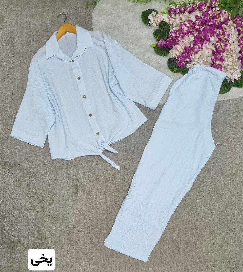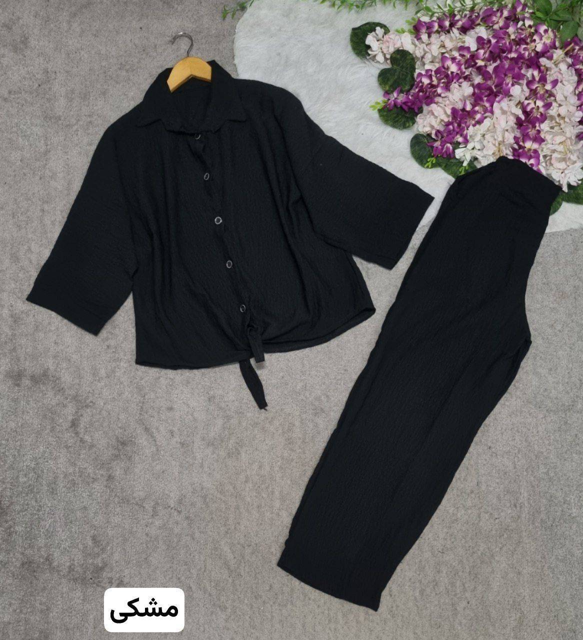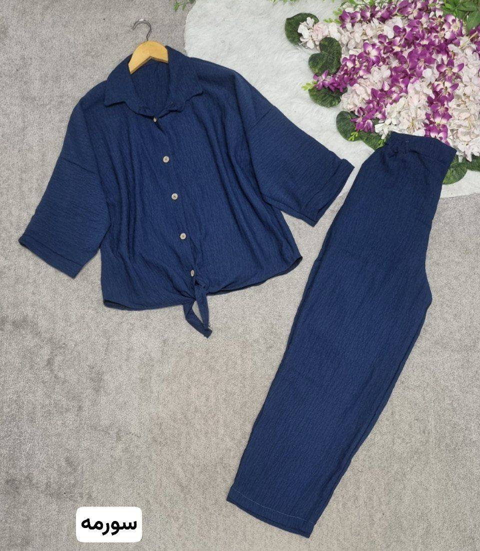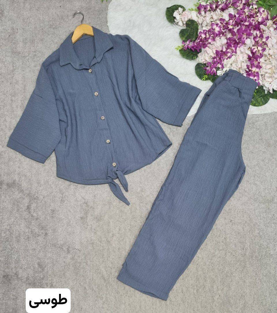 💎 نام: شومیز شلوار تکاو 📋 توضیحات: قد 68 دورسینه 112 استین 56 شلوار 100 ران 66 جیب شلوار کاربردی پشت کمر کش